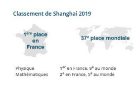 综合排名全法第一,世界第37。物理领域全法第一,世界第九;数学领域全法第二,世界第五。 |